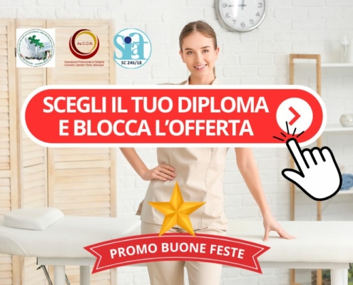 Se sei incuriosito da un singolo corso di massaggio o desideri intraprendere un percorso di Diploma per diventare un massaggiatore professionista, NON PERDERE LA PROMOZIONE BUONE FESTE DELLA MIGLIOR SCUOLA D’ITALIA.